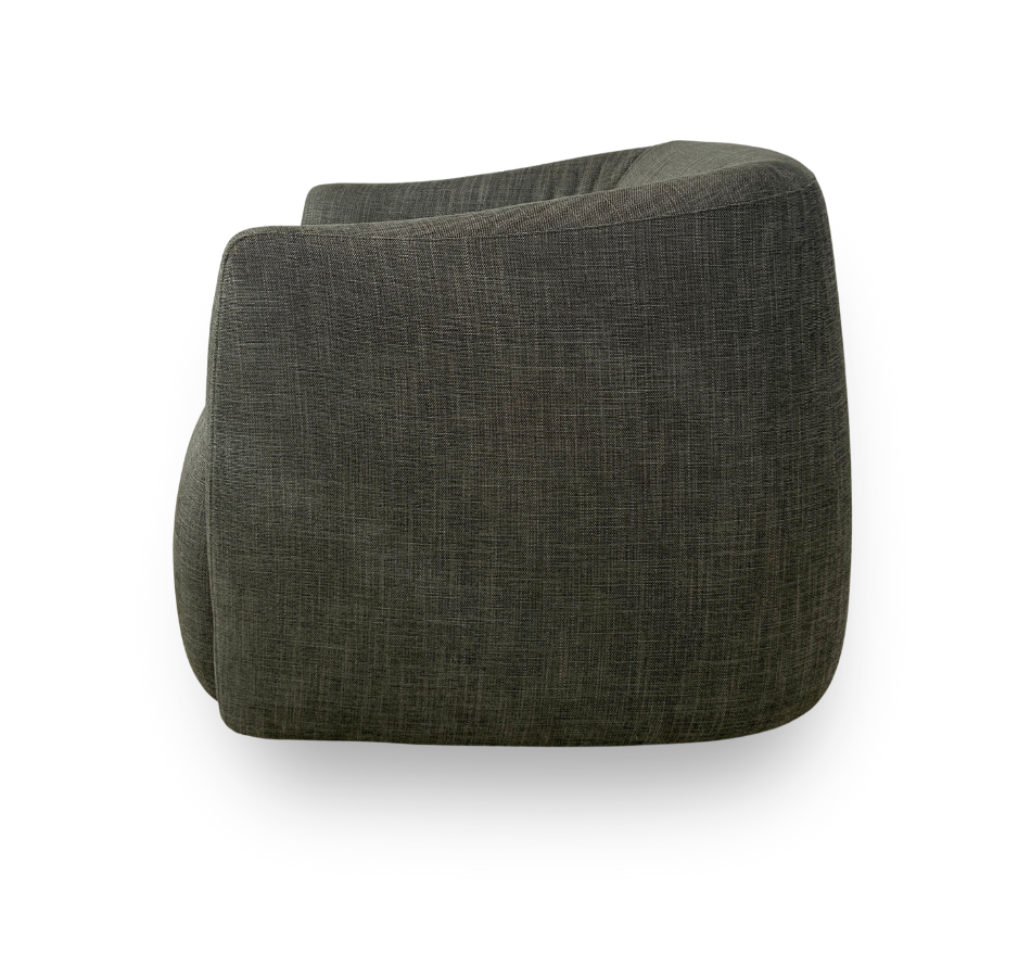 Designed for cozy nooks, Martini is the perfect living room or bedroom chair. Featuring a 360 degree swivel base, and upholstered in your of fabric.