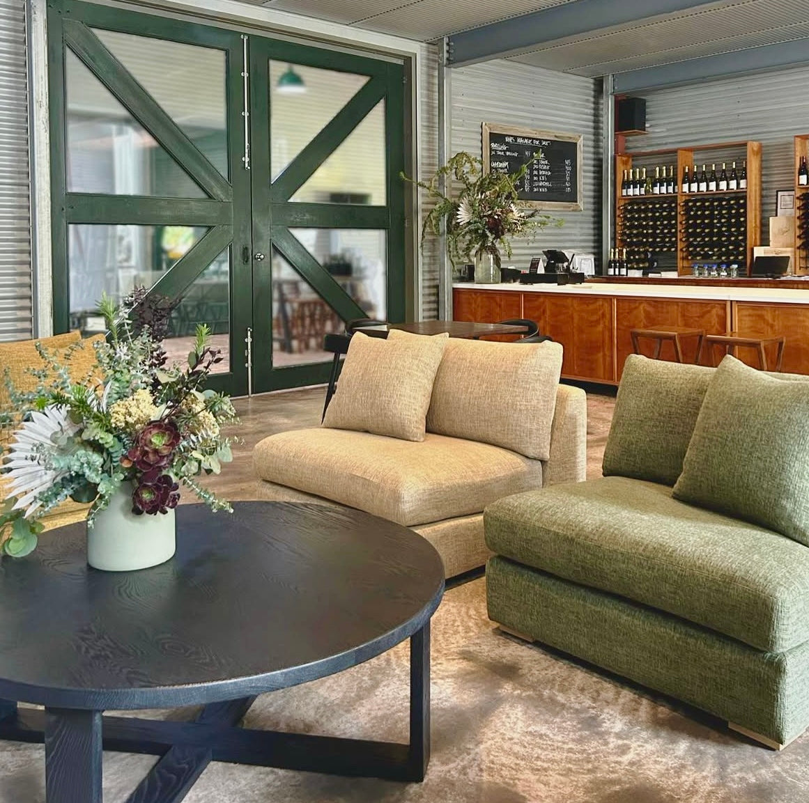 Our Interior designer Tegan had worked to create a serene, organic fit-out to compliment the natural elements of local winery, Stonier Wines on the Mornington Peninsula. Custom designed banquette and occasional seating to reflect the earthy colour palette of Stonier's tranquil surroundings.