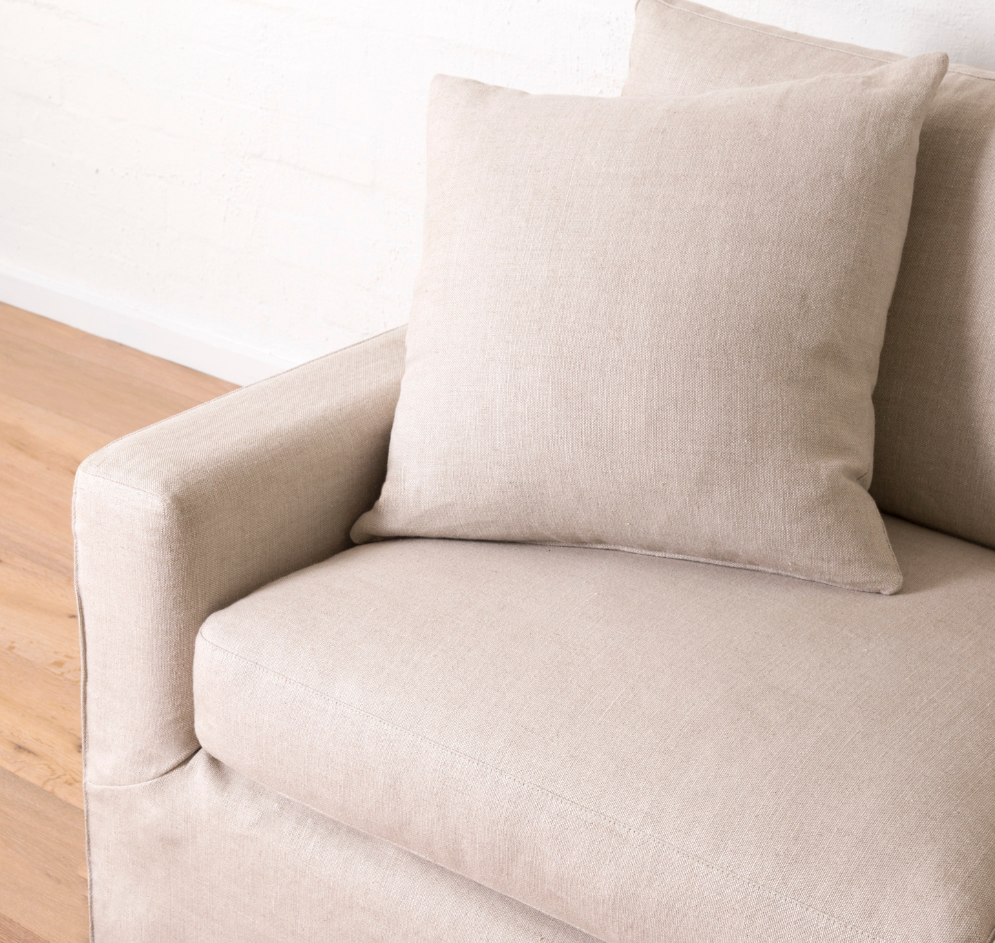 A relaxed design, our Long Island sofa features a loose cover with a casual aesthetic.