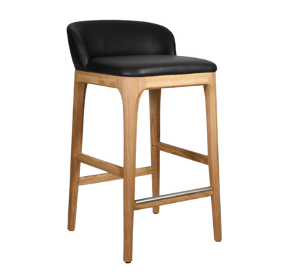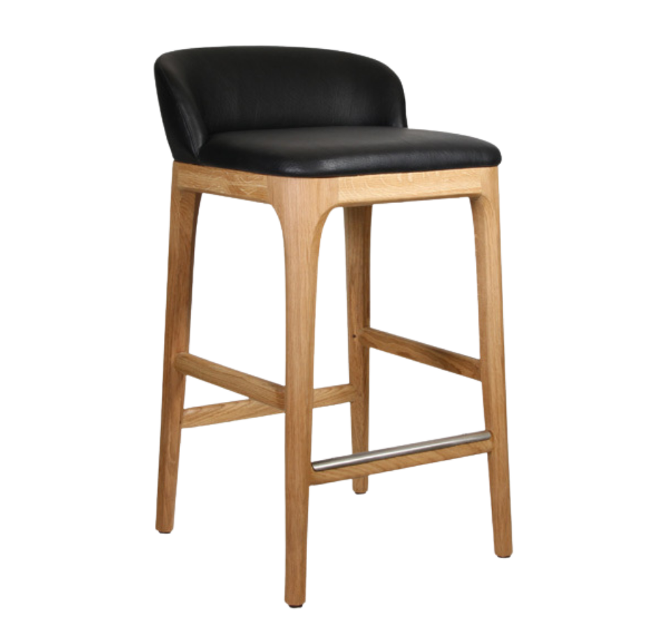 This beautifully crafted bar stool features a softly curved, low-profile backrest that offers gentle support while allowing the stool to tuck neatly under your bench—perfect for streamlined, modern kitchens.