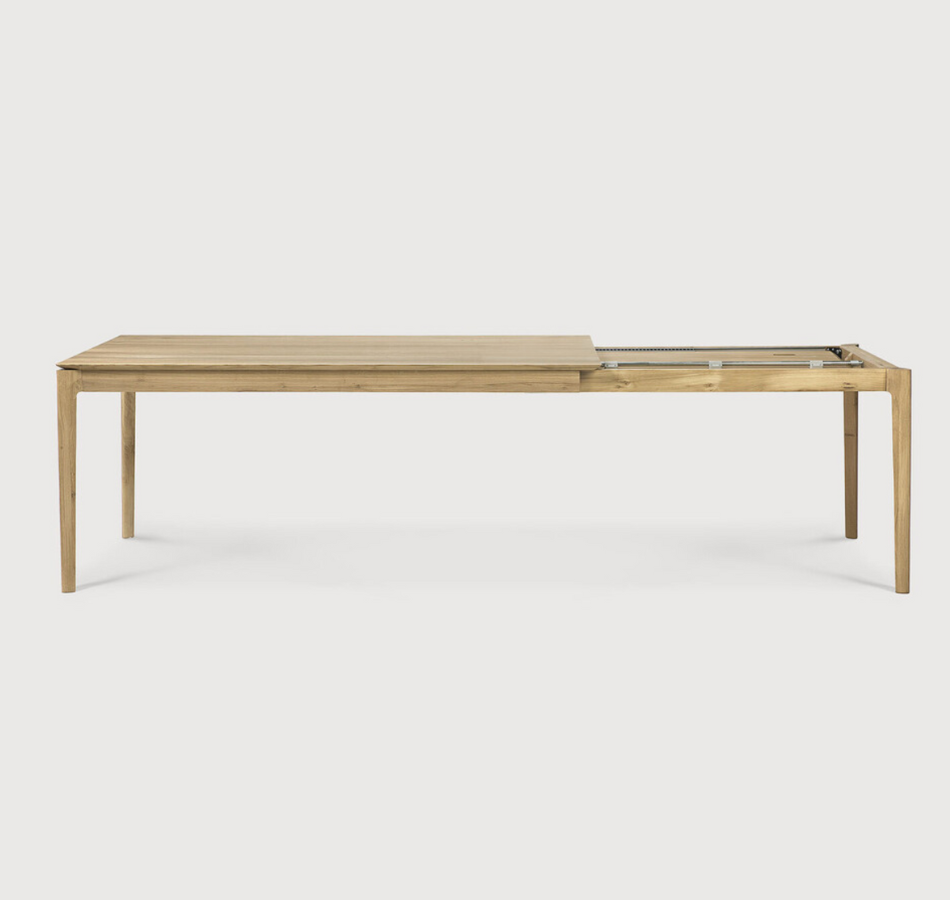 The classic Bocca dining table made extendable to bring even more people together. Its airy shape yet rock solid construction make this solid oak extendable dining table a timeless and remarkable design to enjoy for years to come.