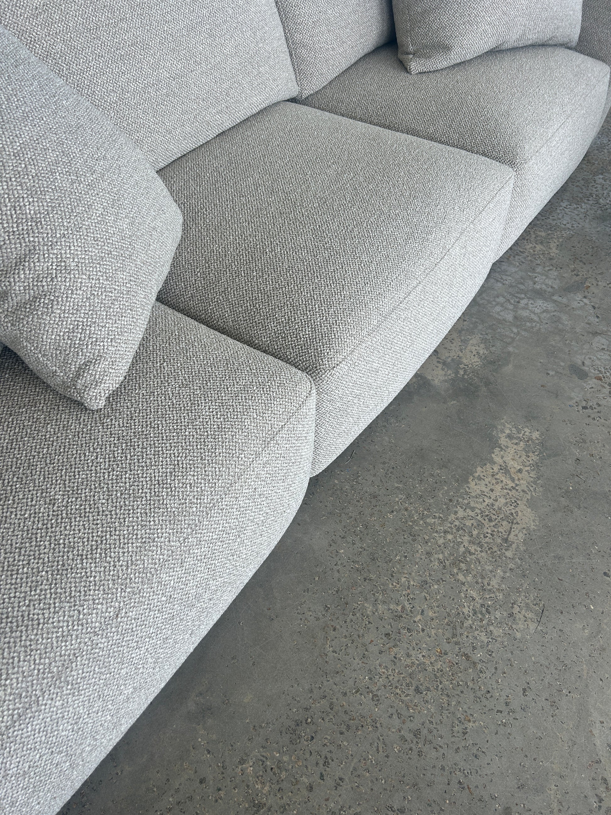 A contemporary sofa with generous proportions and a relaxed feel. Fully upholstered seat cushions are designed to hold their shape, reducing the need for regular plumping, while the soft, textured fabric and clean lines make it an easy fit for everyday living.